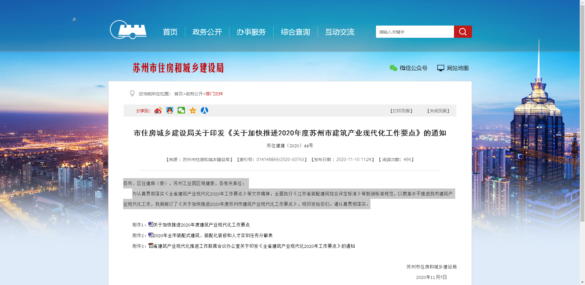 為認真貫徹落實《全省建筑產業現代化2020年工作要點》等文件精神,全面執行《江蘇省裝配建筑綜合評定標準》等新頒標準規范,以更高水平推進我市建筑產業現代化工作,我局制訂了《關于加快推進2020年度蘇州市建筑產業現代化工作要點》,現印發給你們。請認真貫徹落實。