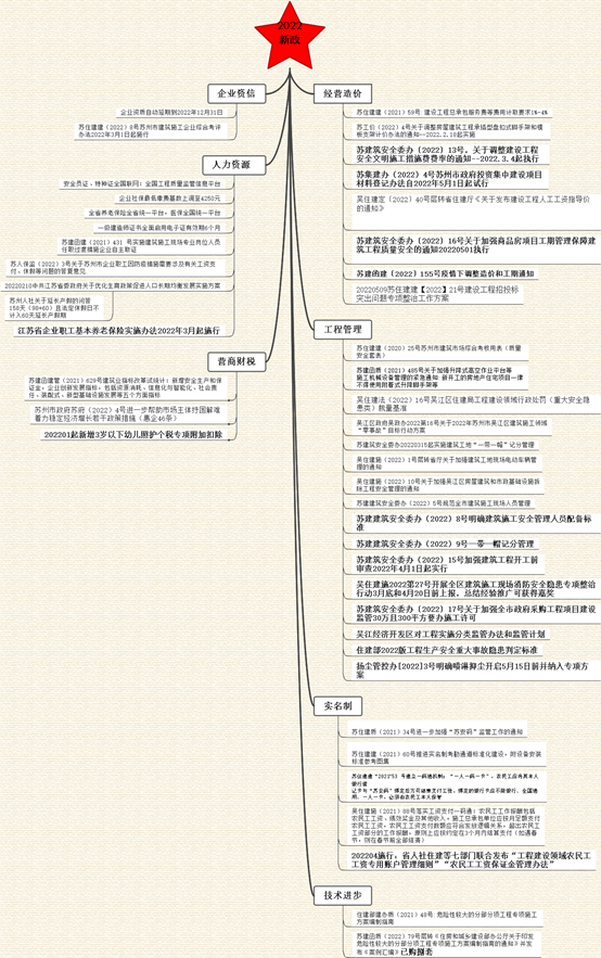 今年以來,疫情給公司生產經營帶來嚴重影響,在建工程到3月份才逐步恢復,有的工程因建設單位原因不得不暫停施工,各項成本增加,承接項目更加困難。從營商環境上,政府出臺了疫情下惠企條款、調整造價和工期、調整承插型盤扣腳手架和模板支架的計價辦法、調整安全文明措施費率等指導規范,發布《危大專項方案編制指南及相關安全匯編》等,助力企業控成本、強技術、穩生產;同時,也進一步加強管控,區政府專門發布 “2022年吳江區建筑施工領域“零事故”目標行動方案”,住建局發布“一帶一帽”記分管理,提高施工安全管理人員配備標準,實施分類監管,加強公益廣告宣傳,以及消防、揚塵專項治理,人社住建等七部門聯合發布“工程建設領域農民工工資專用賬戶實施細則”“農民工工資保證金管理辦法”等,對企業管理提出了更高要求。