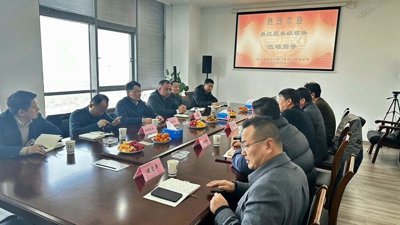 3月7日,吳江區副區長沈偉江一行6人前來吳江市建設工程(集團)有限公司走訪調研,要求進一步提高認識,加快推進建筑業高質量發展,提升建筑業產業地位,搶抓建筑業發展機遇,有效提升吳江建工企業競爭力,按照建筑業特級資質培育目標,全面完成高質量發展任務。區政府辦公室副主任沈春偉、區住建局局長陳宇威,吳江建工董事長劉明寶、總經理王海榮陪同調研。