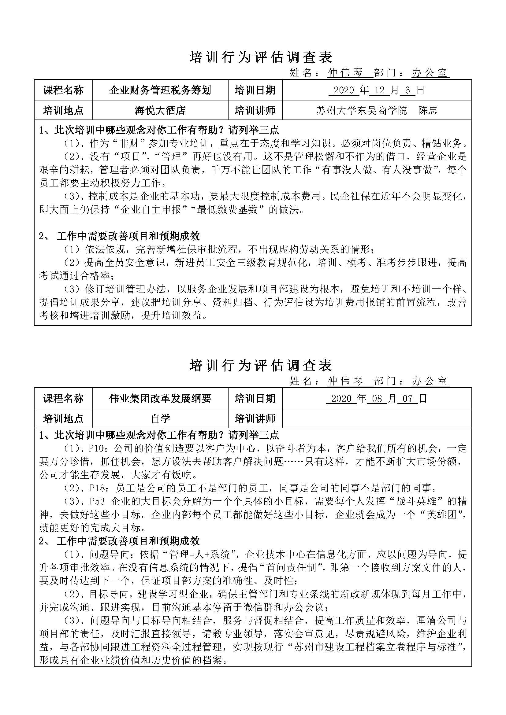 那么,培訓效果如何體現?我們往往對每次培訓進行分享,但分享之后的反饋似乎只是在微信群收到幾個大拇指而已,因培訓得到的感悟仍然在受訓者中熒光閃爍。為了收集這些閃光點,我們請大家填一份簡單的表格,作為年初疫情之后“工作與成長思考”的印證。沒有參加本次專題培訓的員工請以學習《蘇州偉業集團改革發展綱要》或其他專業學習為依據,感謝支持!